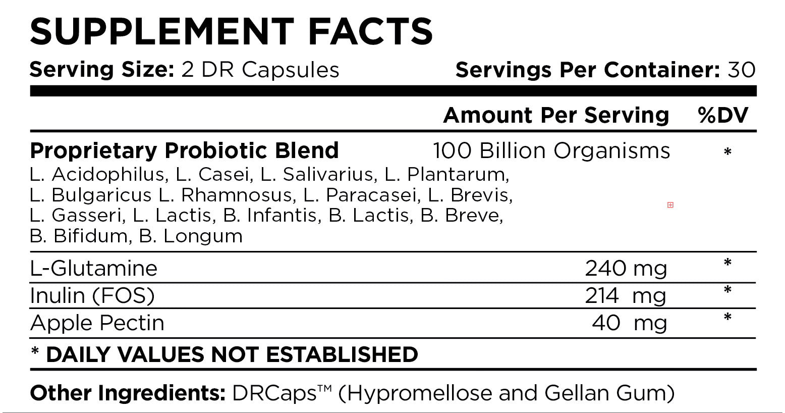 Contains 100 Billion CFU per serving & includes L-Glutamine and Prebiotics.